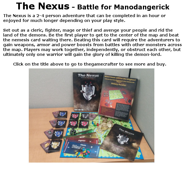 I have finally completed all the corrections for spelling errors, inconsistencies, and graphics. The GameCrafter store has been updated with the search information and Nexus sales page has as good of a description I can manage.